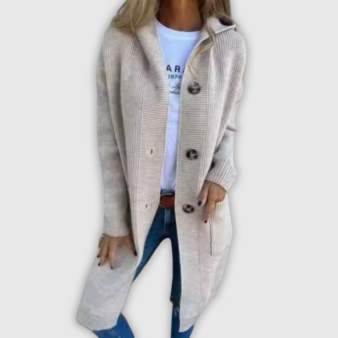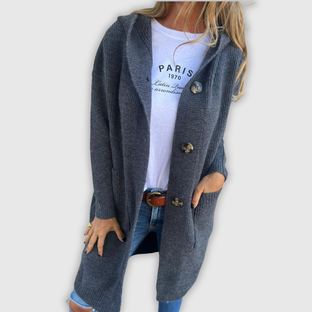 Giselle kardigan je popoln za hladnejše dni – s podaljšanim krojem združuje toplino in eleganco.