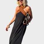 Elegantna Obleka z Odprtimi Hrbtom in Sodobnim Prečnim Ovratnikom