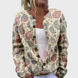 Elegantna megzta liemenė z rafiniranim vzorcem združuje udobje in eleganco. Njena sproščena prileganja omogočajo svobodo gibanja, medtem ko minimalistična estetika zagotavlja popolno izbiro za vsakodnevne in posebne priložnosti.