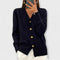 Izdelan iz debele, mehke tkanine, ta kardigan nudi udobje in klasičen videz. Enobarvna zasnova in globok V-izrez omogočata enostavno kombiniranje z osnovnimi oblačili, srajcami ali obleki.