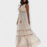 Doživite sproščeno eleganco boho stila z našo maxi obleko Érica. Popolna za vsako priložnost, združuje A-linijo z gladkim silhuetom in subtilnimi čipkastimi detajli, kar zagotavlja edinstven in sproščen videz.