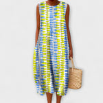Odkrijte Obleko Isabela, ki združuje eleganten stil z neprekosljivim udobjem. Narejena iz mehke in zračne mešanice bombaža, je idealna spremljevalka za tople pomladne in poletne dni.