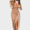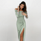 Elegantni visok razporek: Stranski razporek daje drzen poudarek in omogoča več svobode gibanja - popolna ravnotežna med eleganco in samozavestjo.