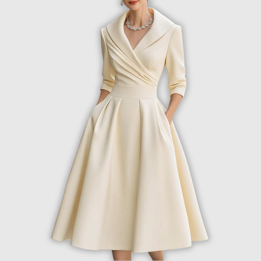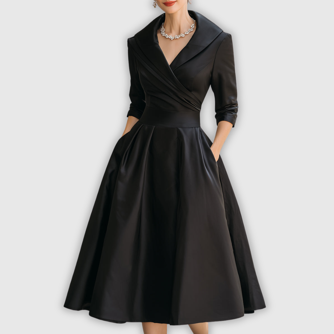 Ženstvena in elegantna obleka, ki se prilega vsaki priložnosti – od večerij do prazničnih dogodkov.