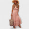 Potopite se v brezčasno eleganco z našo maxi obleko Lola. Ta obleka izžareva boho čar s čudovitimi čipkastimi detajli in gladko silhueto, kar jo naredi popolno za tople poletne dni, kjer stil in udobje hodita z roko v roki.