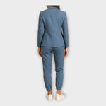 Edinstven kostum združuje sodoben stil s sproščenim vzdušjem. Sušek dodaja eleganco, medtem ko jogger hlače zagotavljajo udobje v vsakodnevnem življenju. Idealna izbira za pisarno, sestanke ali vsakodnevne nastope.