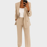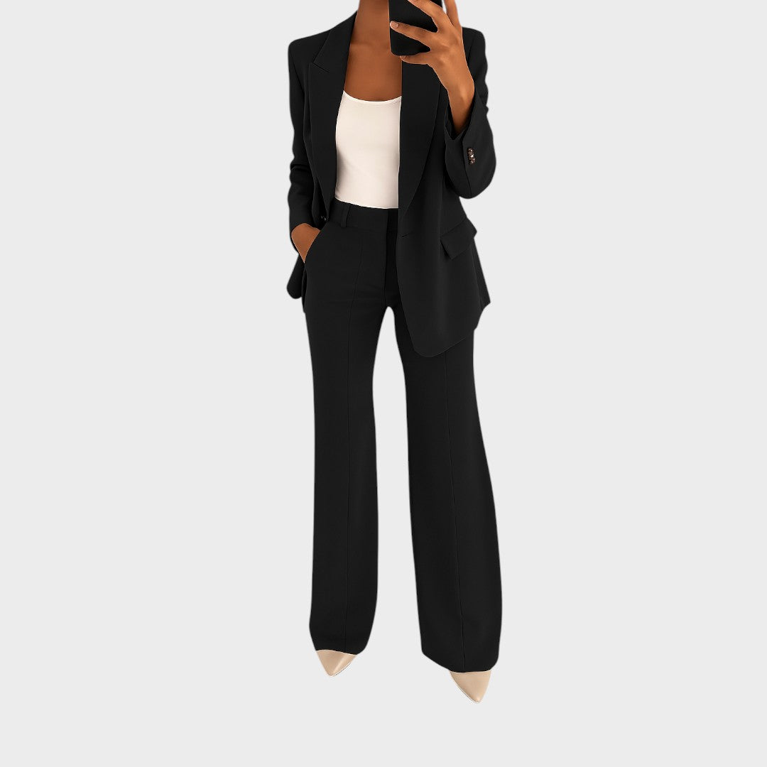 - Usklajen dizajn švarka in hlač, ki ustvarja elegantno, brezčasno silhueto.