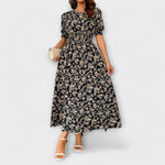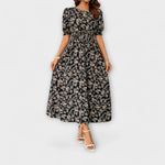 Amelia – Obleka s Krogličnim Izrezom in Cvetličnim Motivi