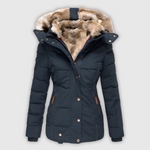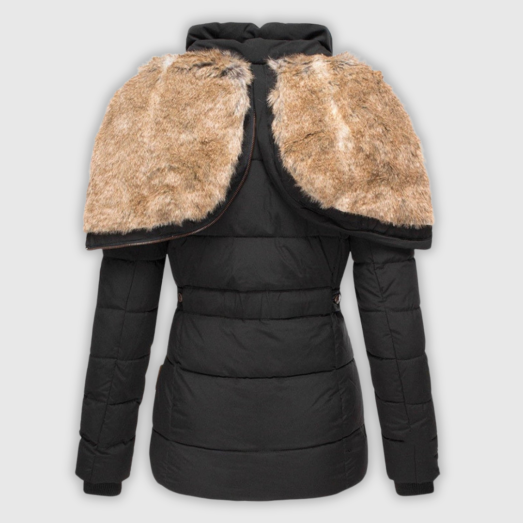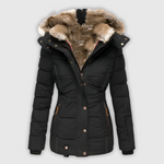 Annamarie jakna združuje toplino in eleganco za hladne dni. Kapuca in oprijet kroj lepo poudarita postavo.