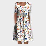 Cvetlično oblačilo prinaša edinstven občutek svobode in ženskosti. S udobnim silhuetom, kratkimi rokavi in žepi, ki dodajajo praktičnost, je to idealna izbira za sprehode, kavo ali vsakodnevne aktivnosti s stilom.