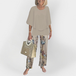 Moderen komplet z udobnimi majicami in hlačami z vzorci je idealna izbira za stilne videze čez ves dan. Majice imajo ohlapen kroj, ki lepo poudari vsakšno postavo, medtem ko hlače presenetijo s subtilnimi vzorci.