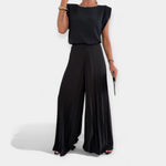 Stilen komplet, ki odlično združuje udobje s subtilno eleganco. Idealno za tople dni, nudi svobodo gibanja in naraven stil za vsako priložnost.