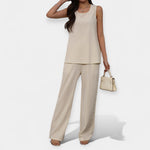Udobna Komplet z Rokavi in Širokimi Hlačami