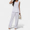 Rokavi nežno objemajo telo, medtem ko široke hlače nudijo prostor in eleganco vašemu vsakdanjemu videzu.