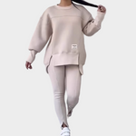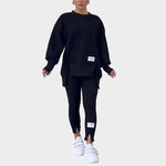 Uživajte v udobju in slogu s tem črnim športnim kompletom, ki je idealen za vsakodnevne videze z modernim značajem. Komplet obsega dolg rokav športno majico in udobne hlačne leginge, ki združujejo vsakodnevno razpoloženje z elegantnimi detajli.